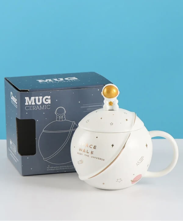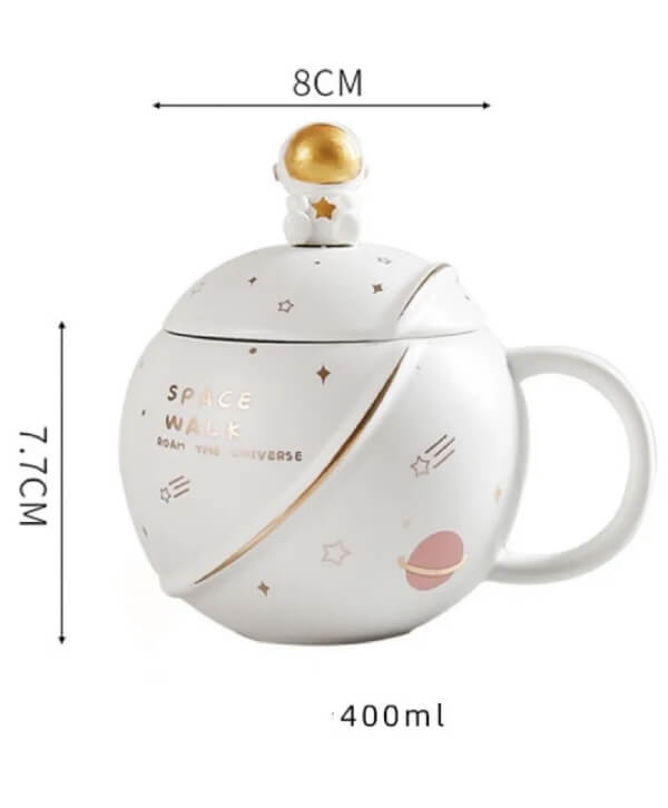 Creative Planet Astronaut Mug with Lid and Spoon.
