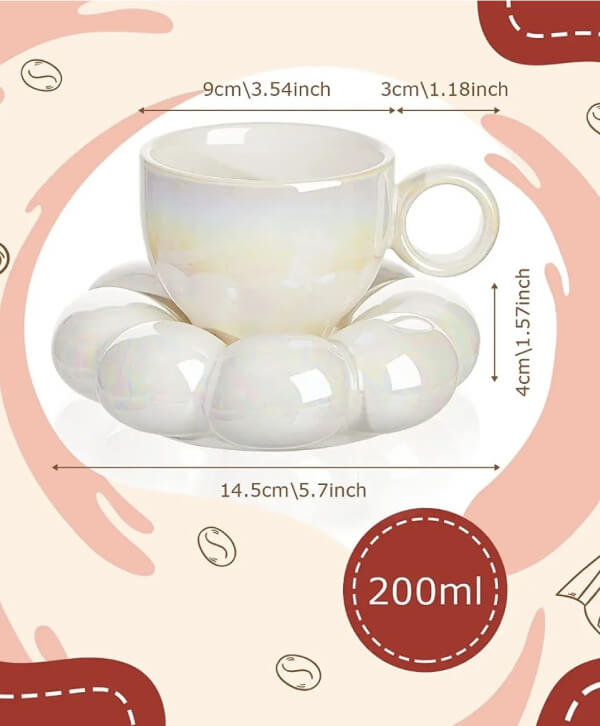 7 Oz Creative Cute Cup with Sunflower Coaster Ceramic Coffee Mug for Tea and Latte Milk. Dishwasher and Microwave Safe